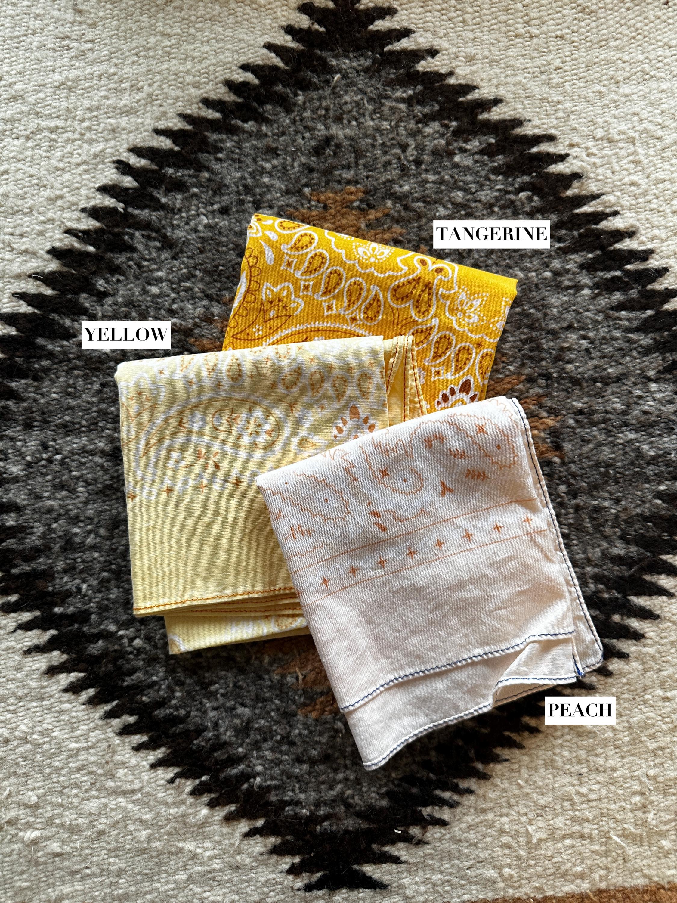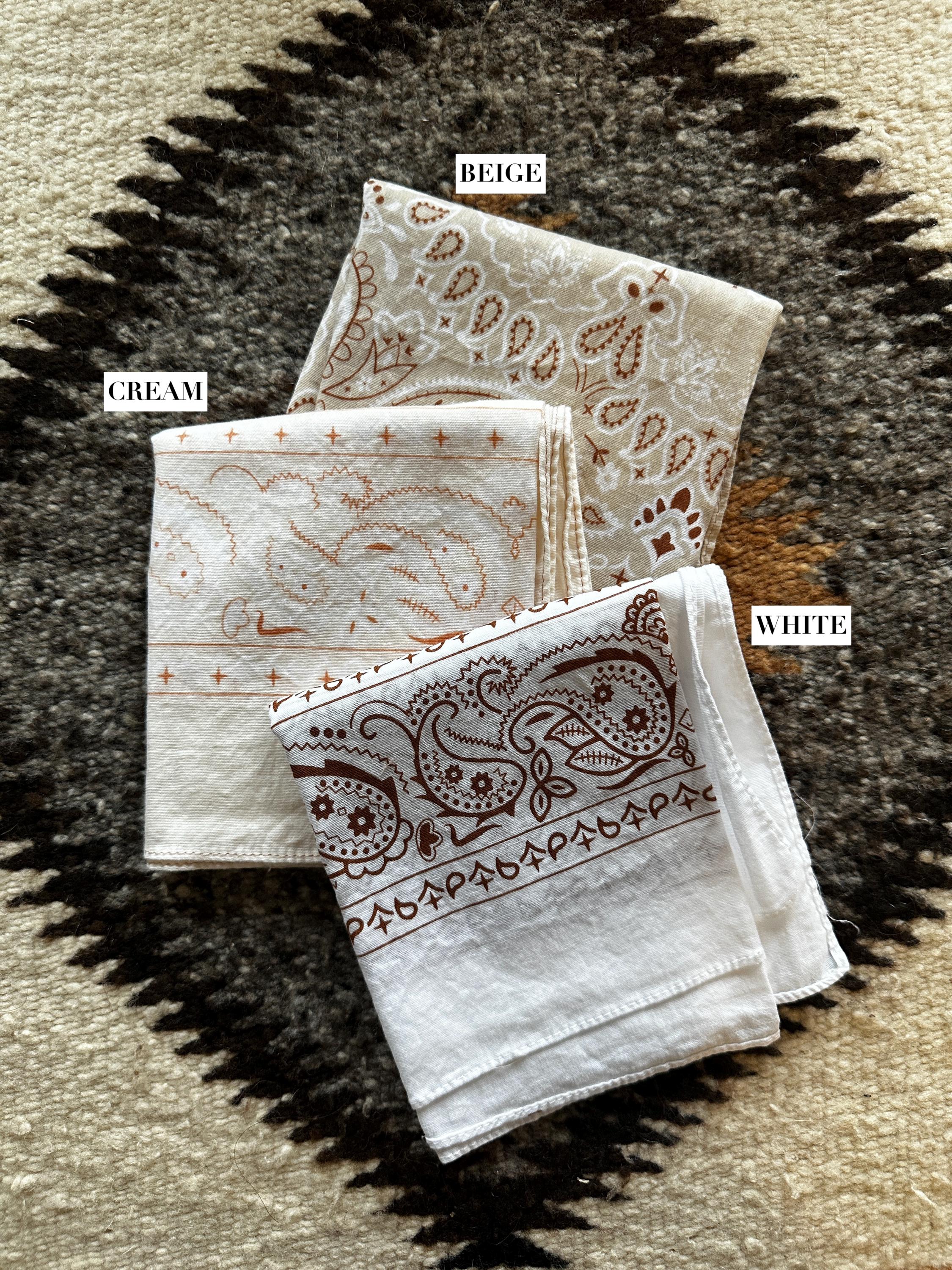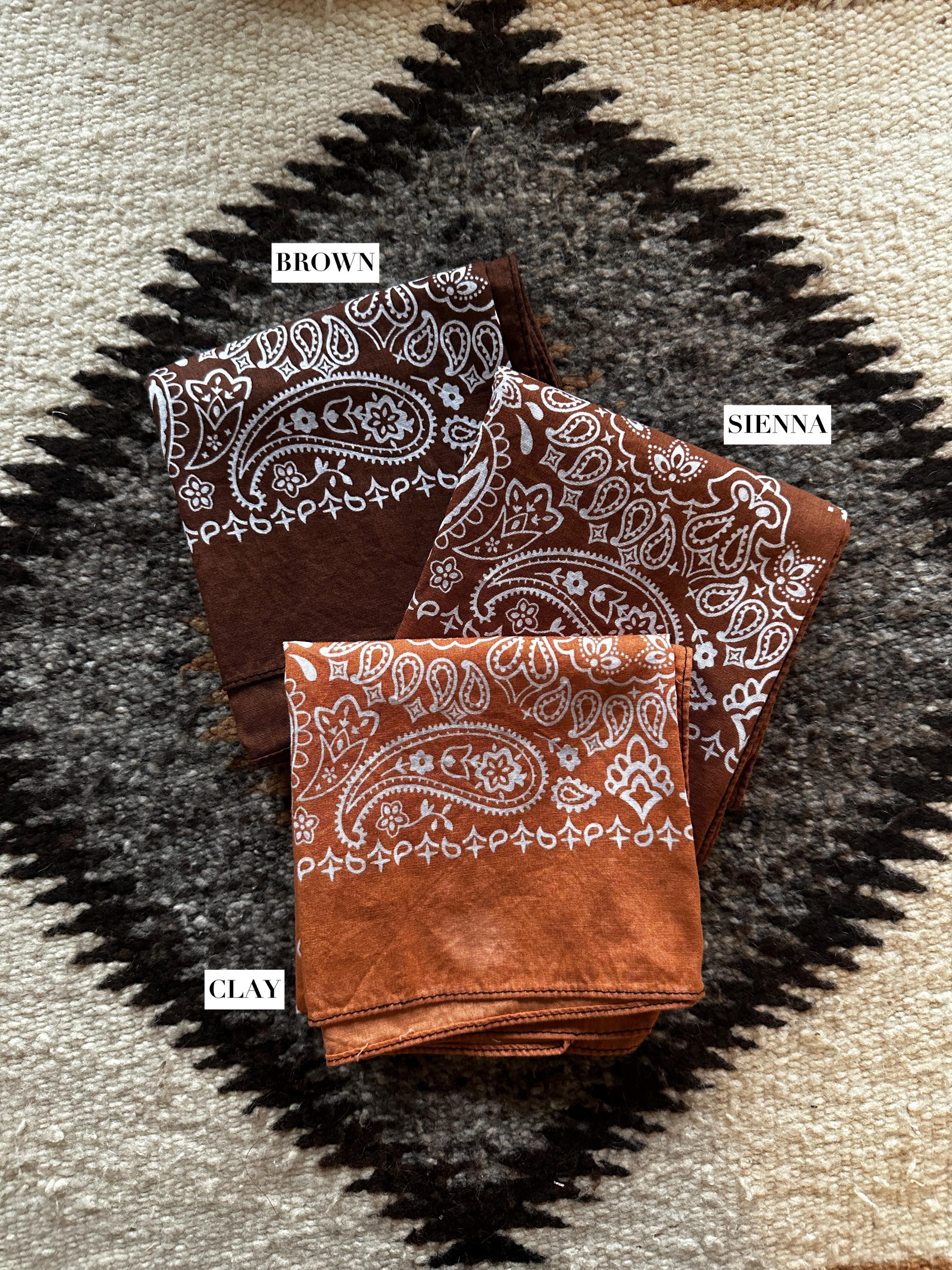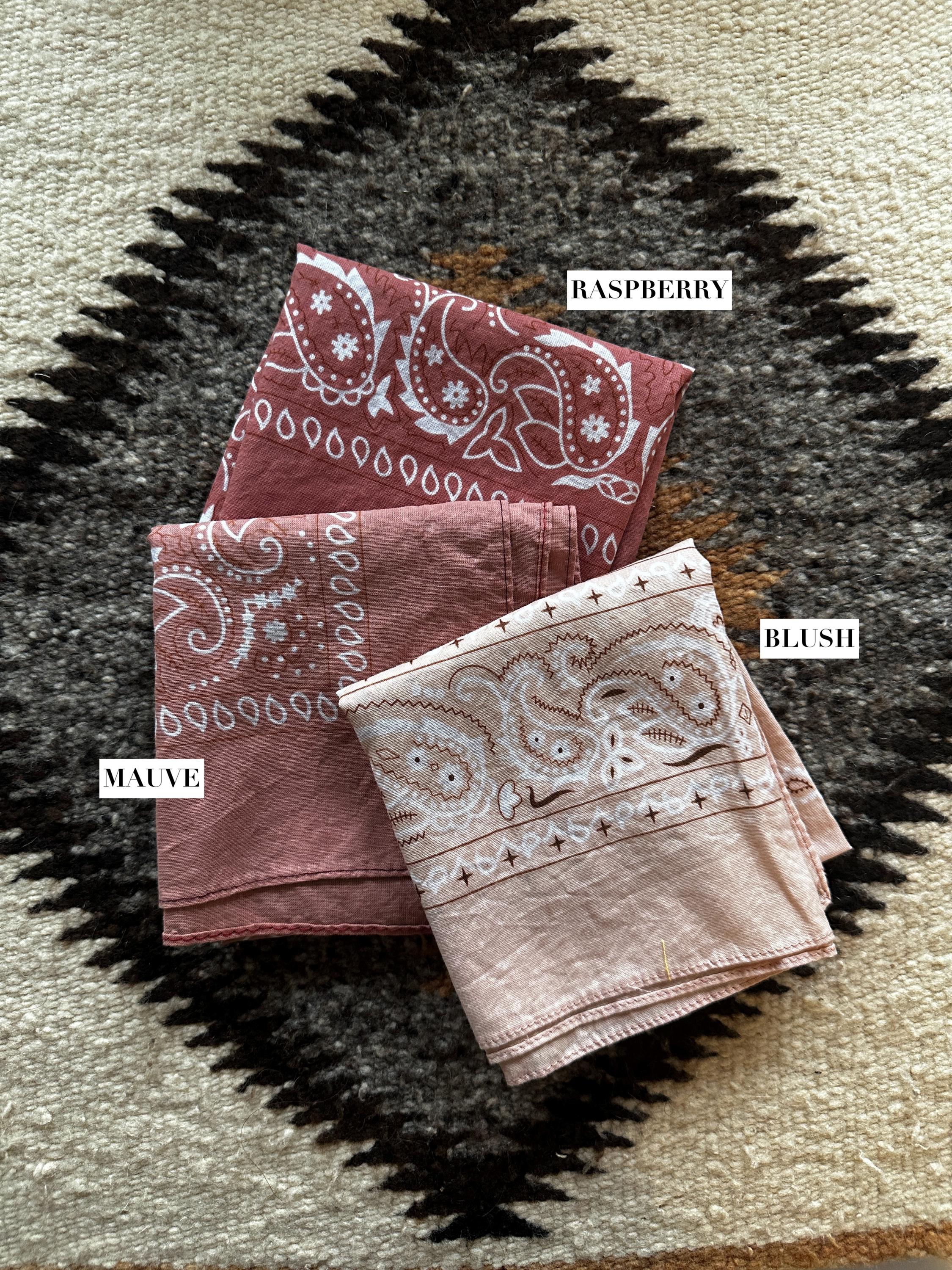 **Some bandanas have contrasting stitching (Ex: Peach has blue thread around the edges, clay has black thread) **