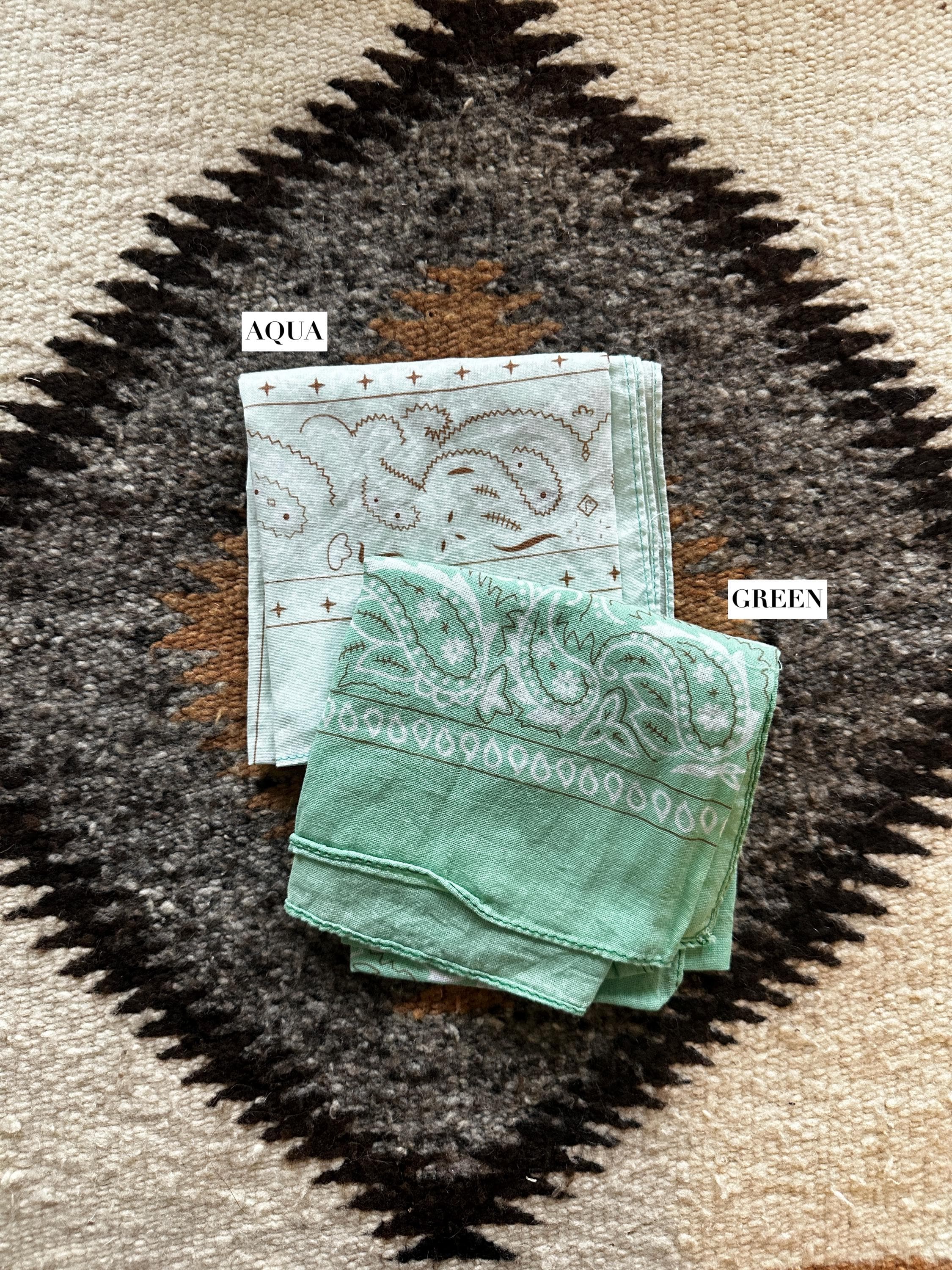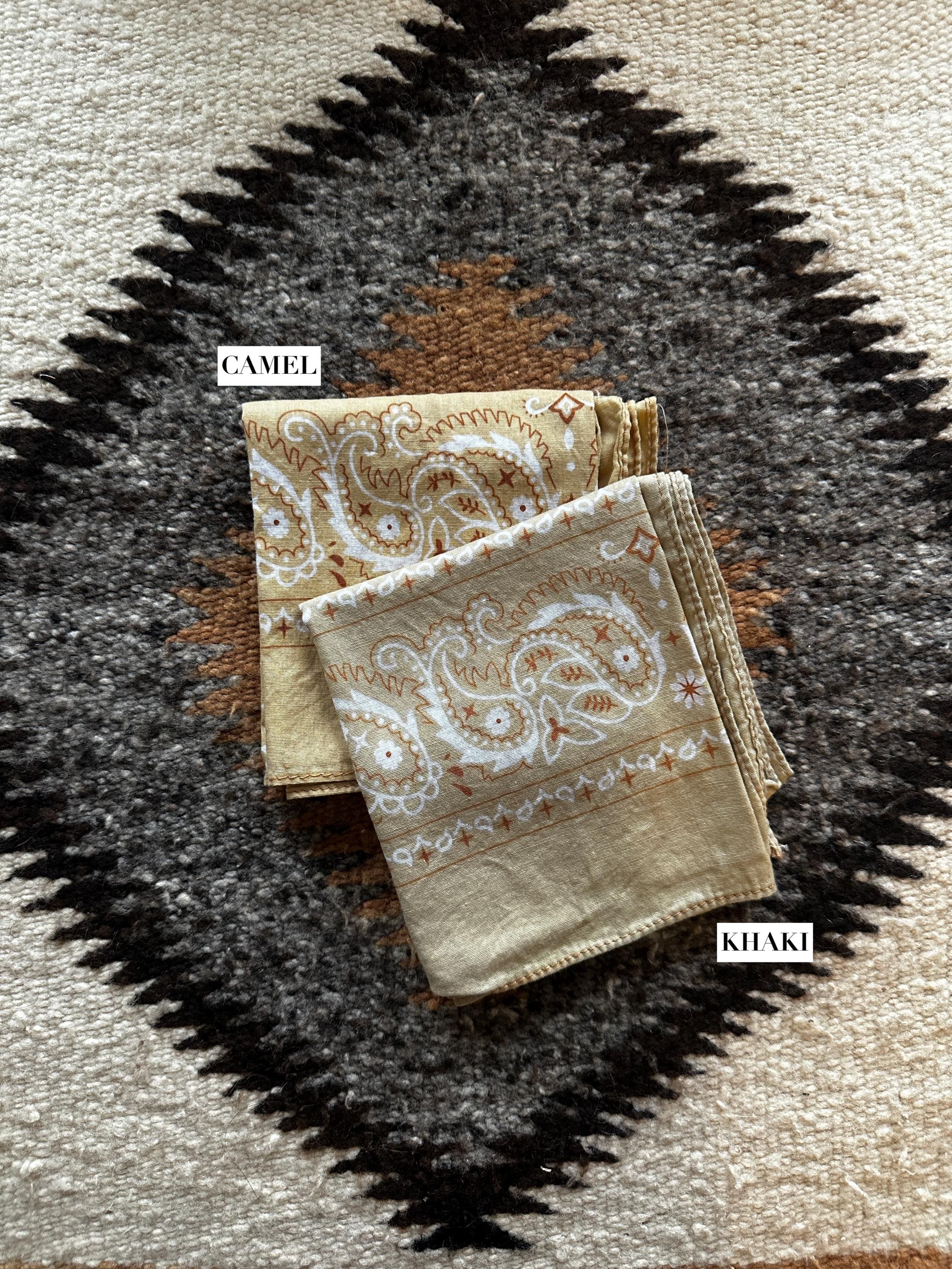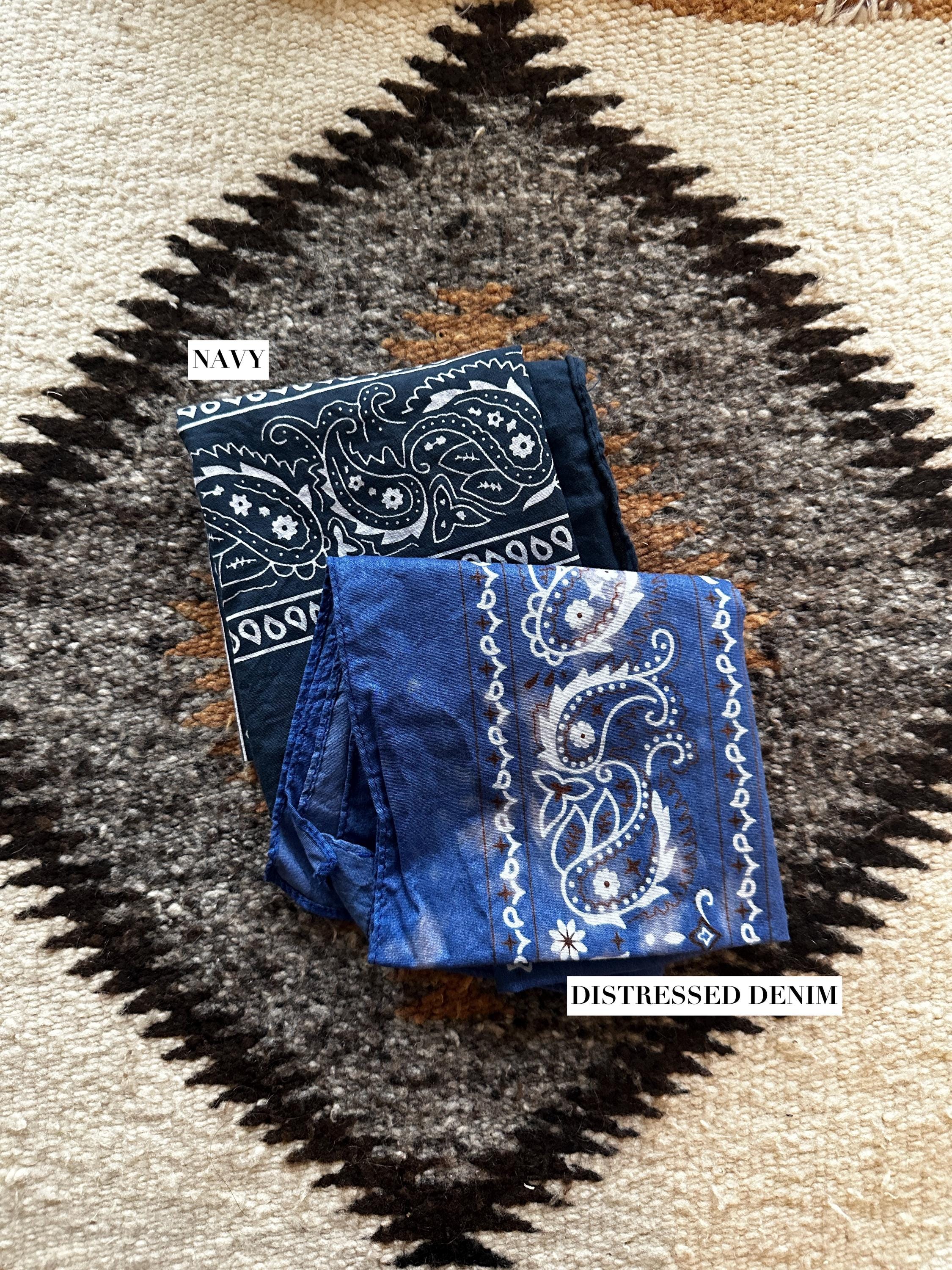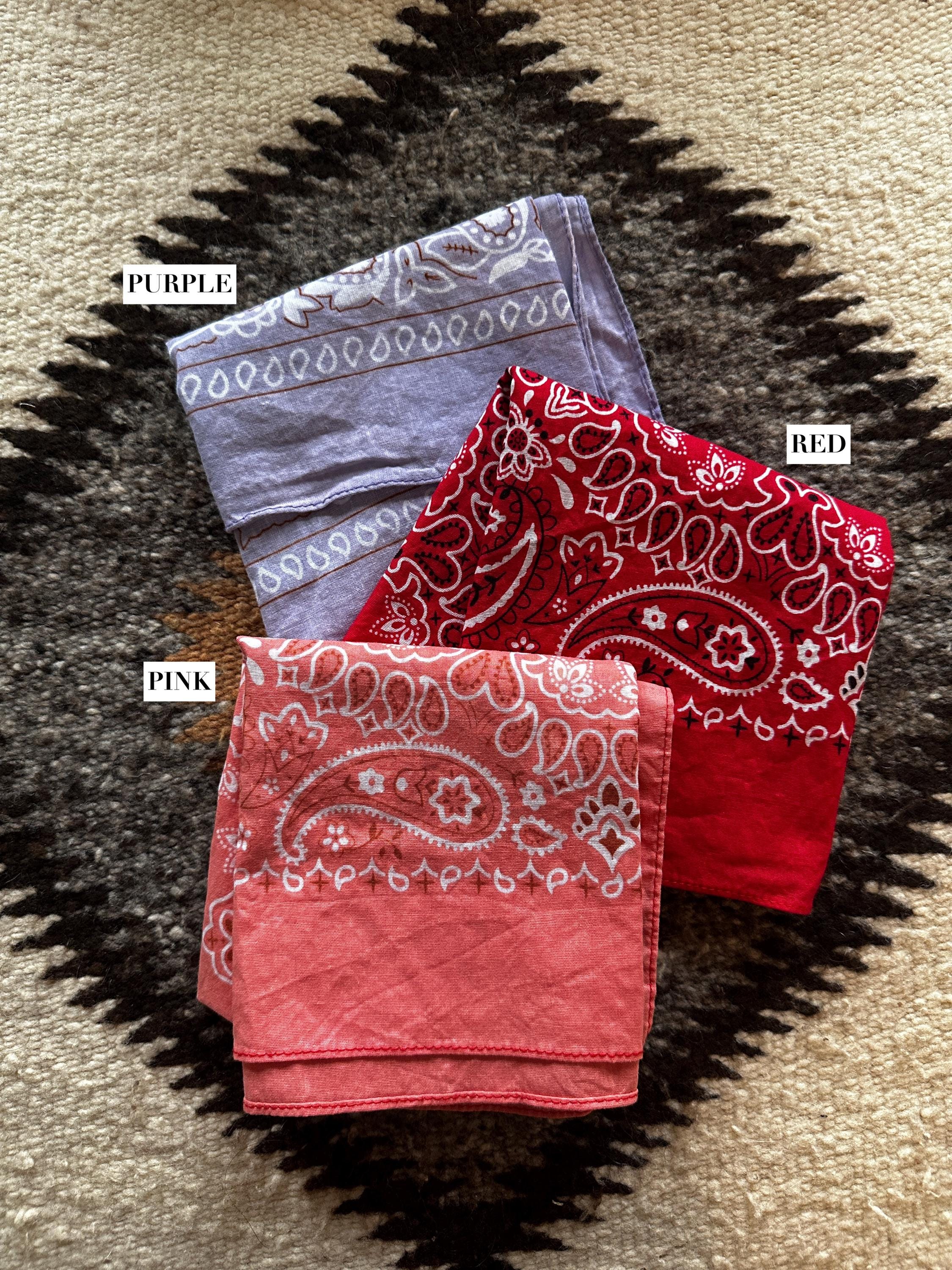 **Some bandanas have contrasting stitching (Ex: Peach has blue thread around the edges, clay has black thread) **