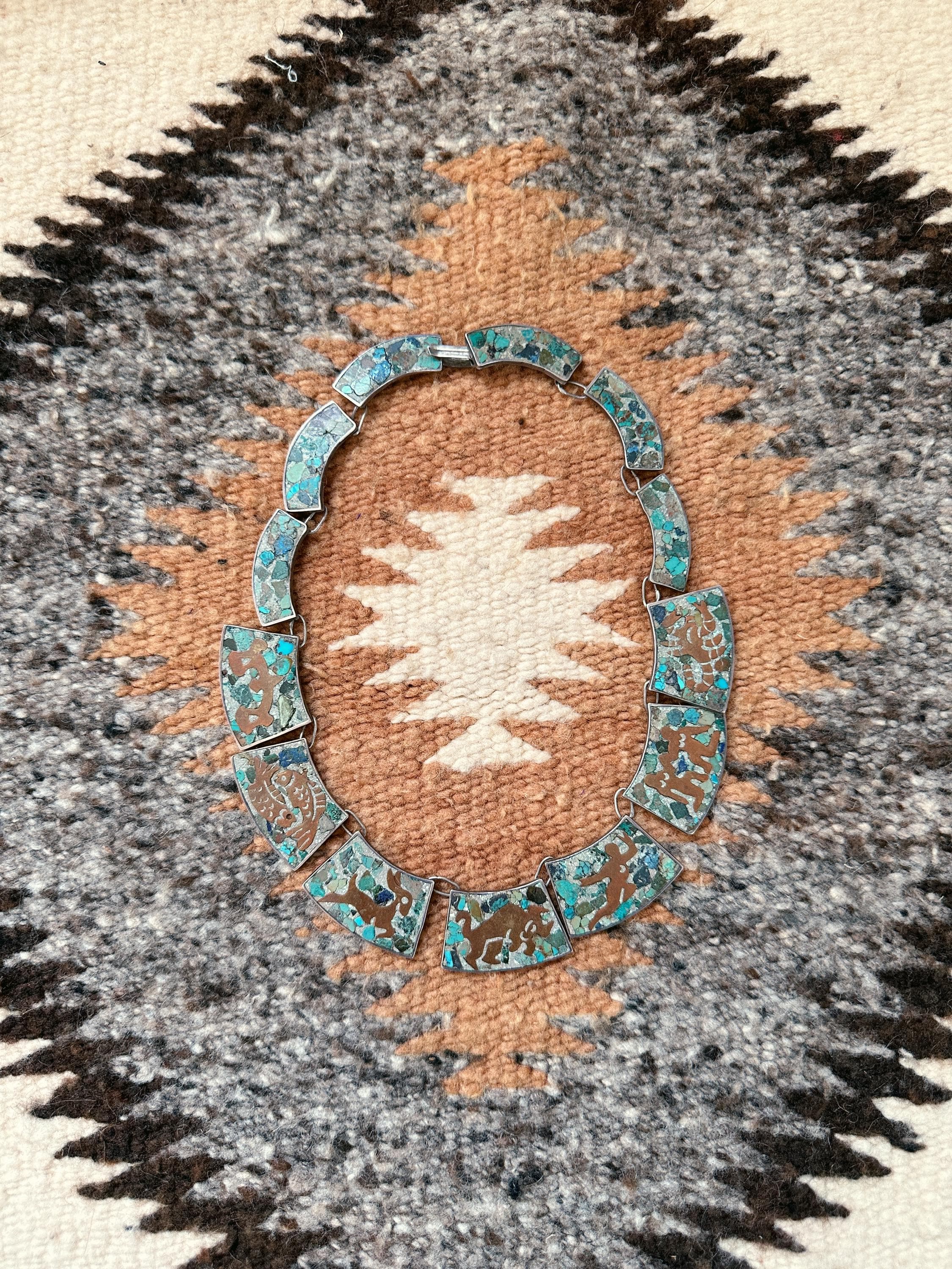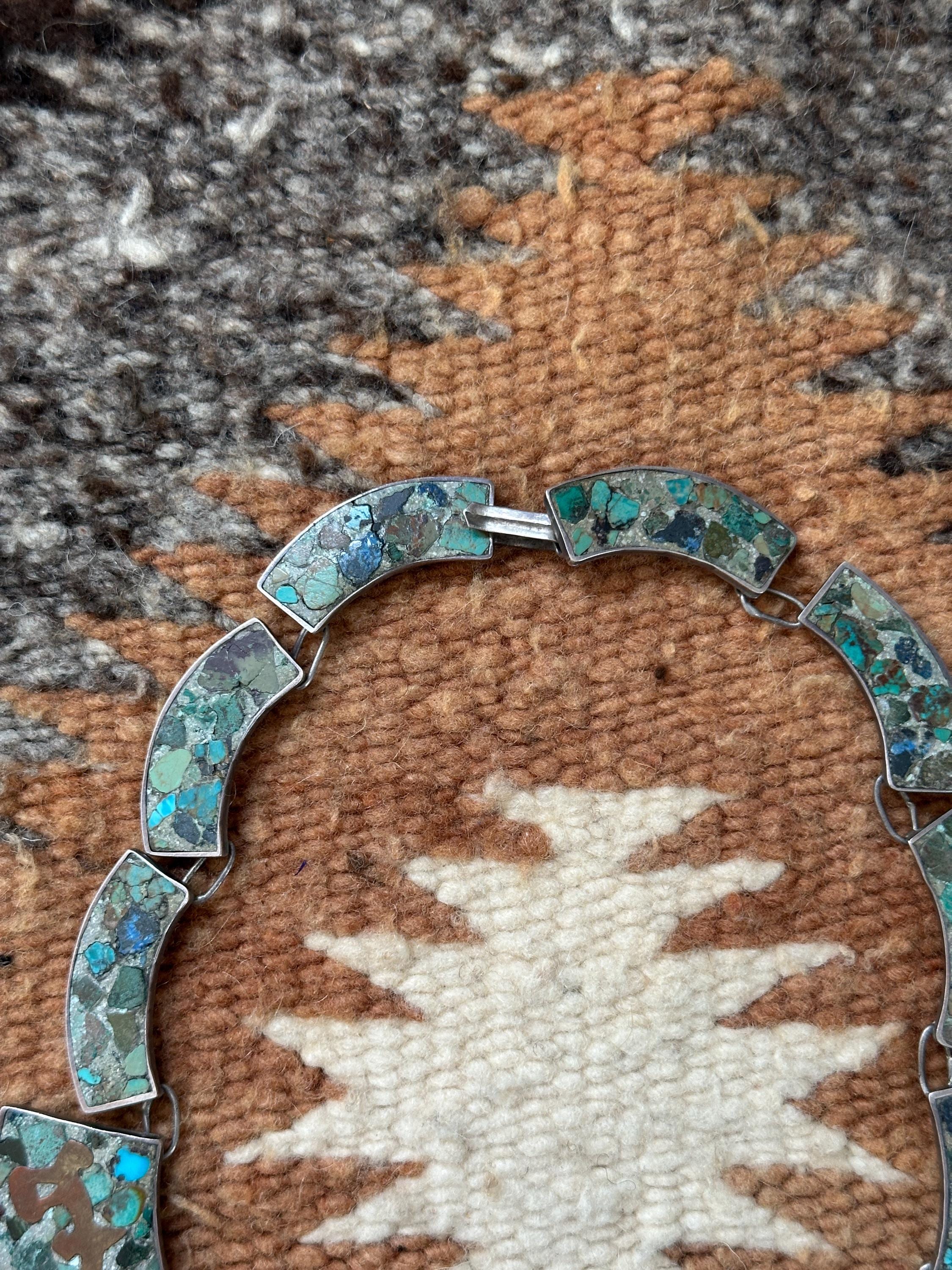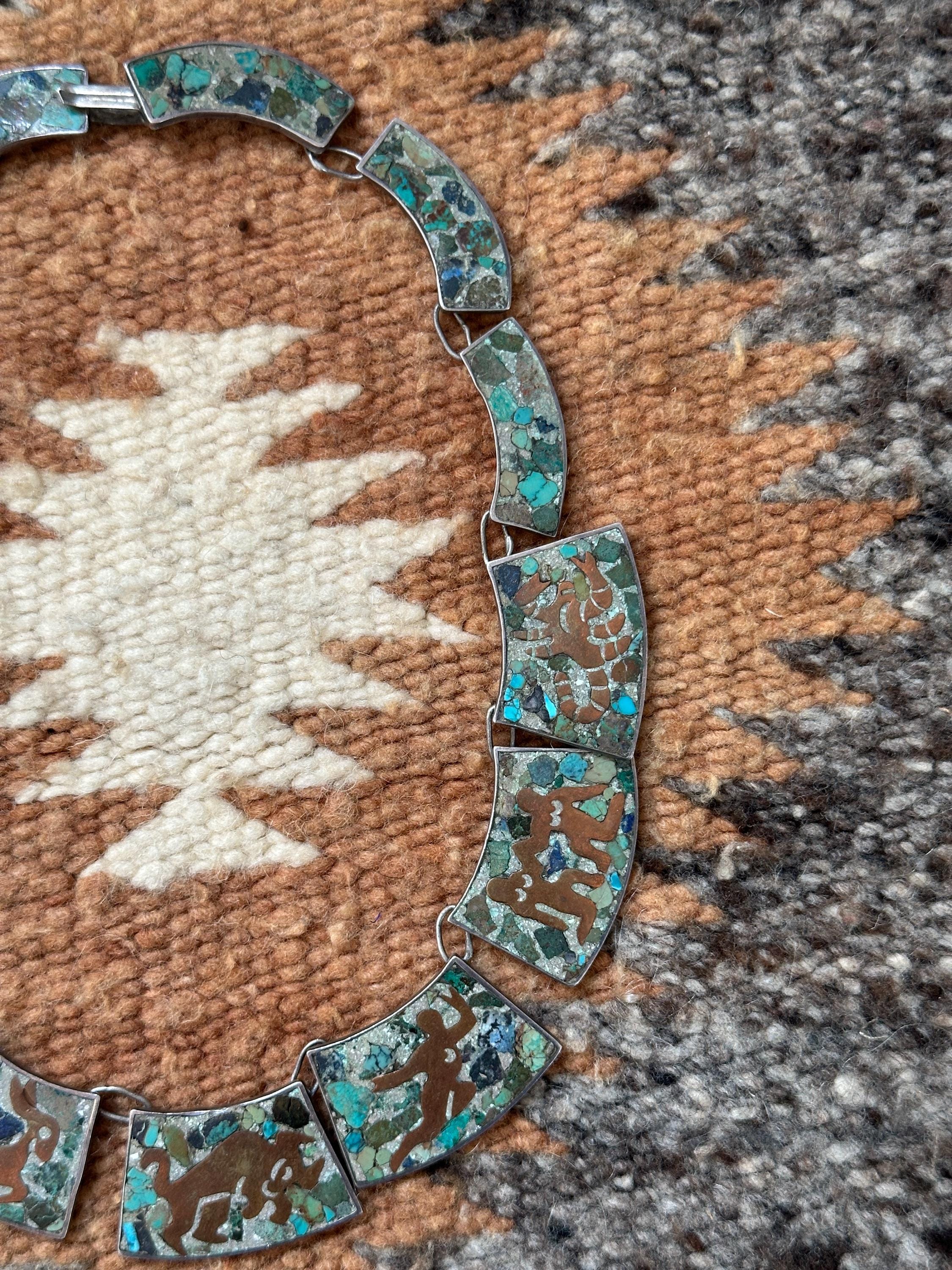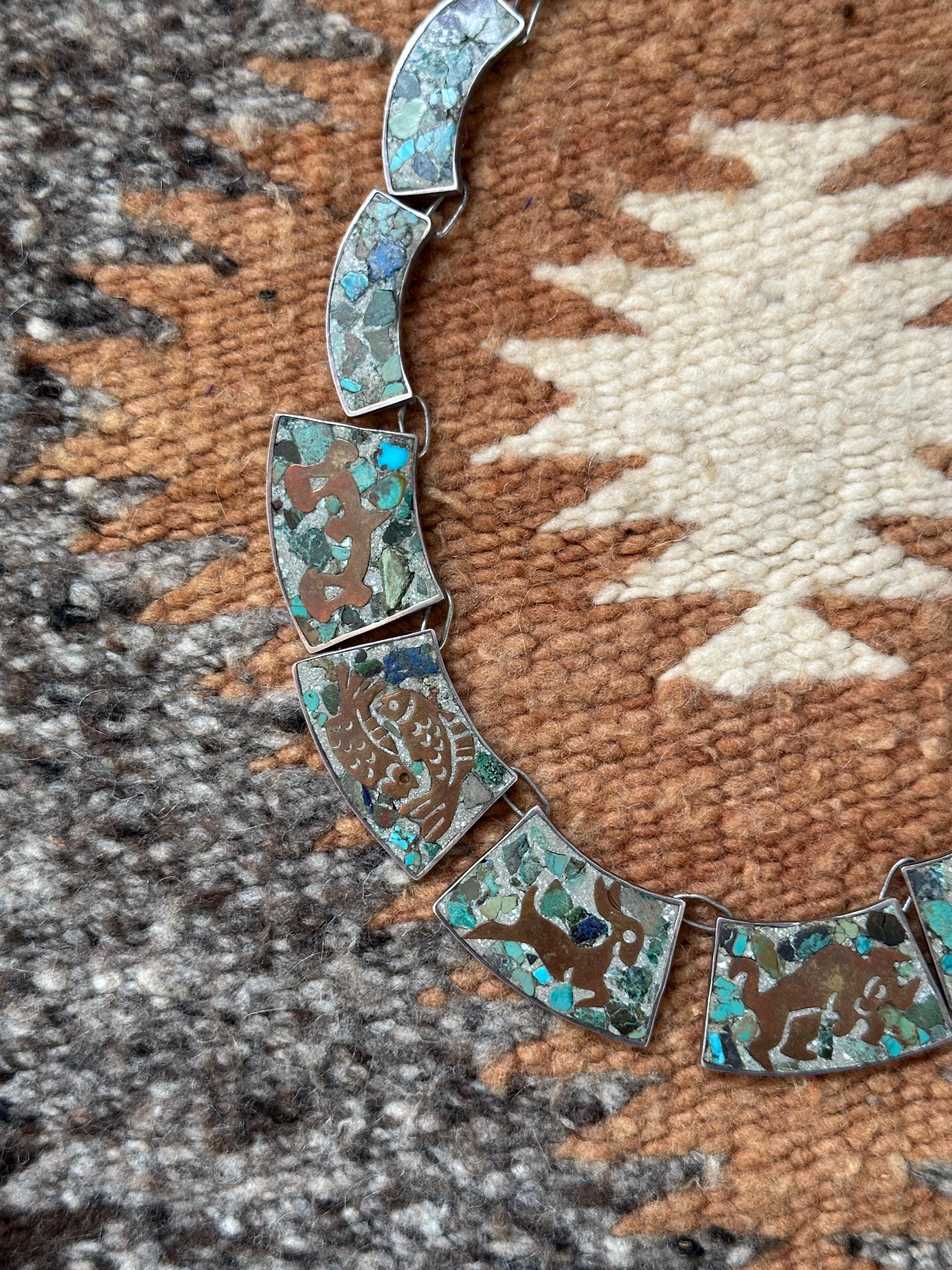 STERLING WITH CRUSHED STONE MOSAIC AND COPPER DESIGN