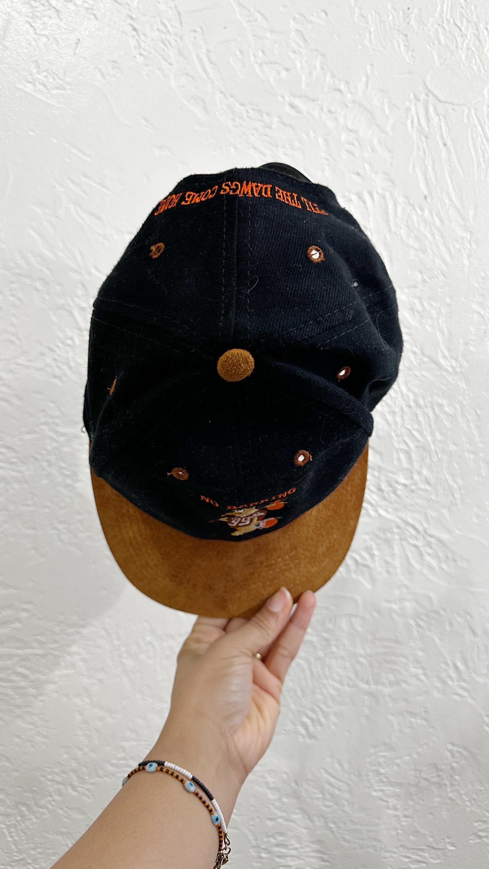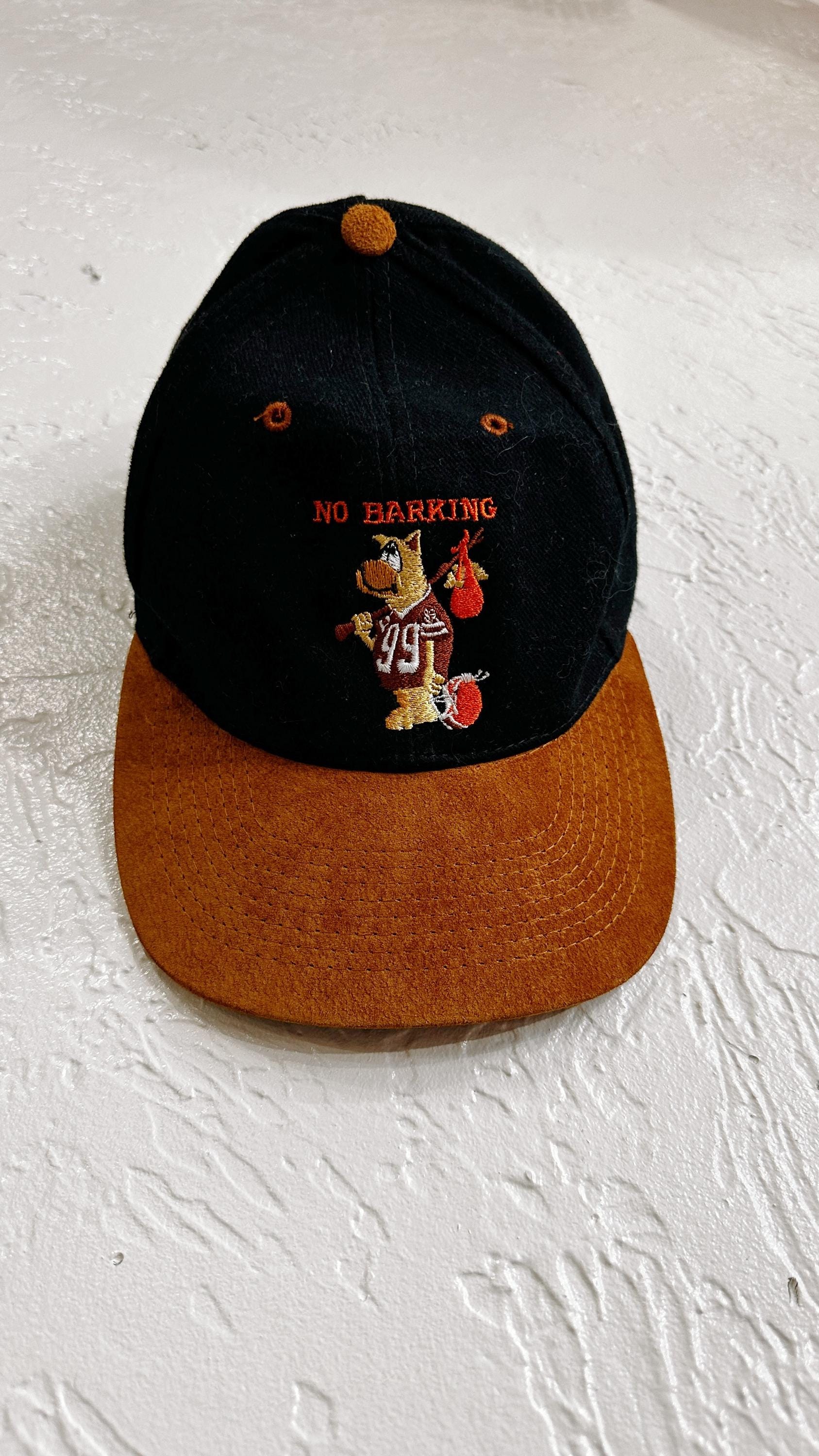 "NO BARKING" embroidered on front with "TIL THE DAWGS COME HOME" embroidered on back. Most likely from the era when the Browns left for Baltimore.