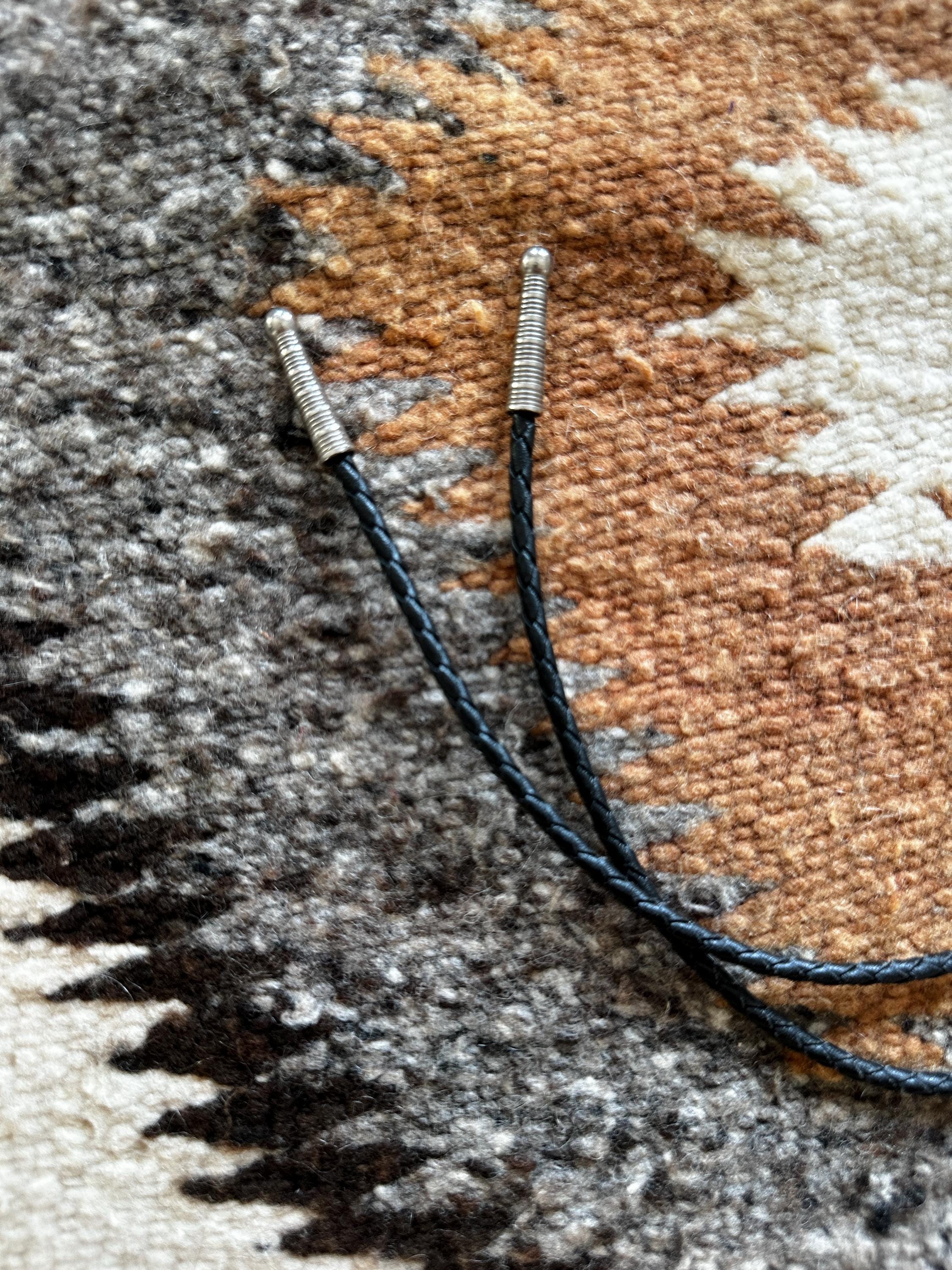 Black leather cord with silver tips