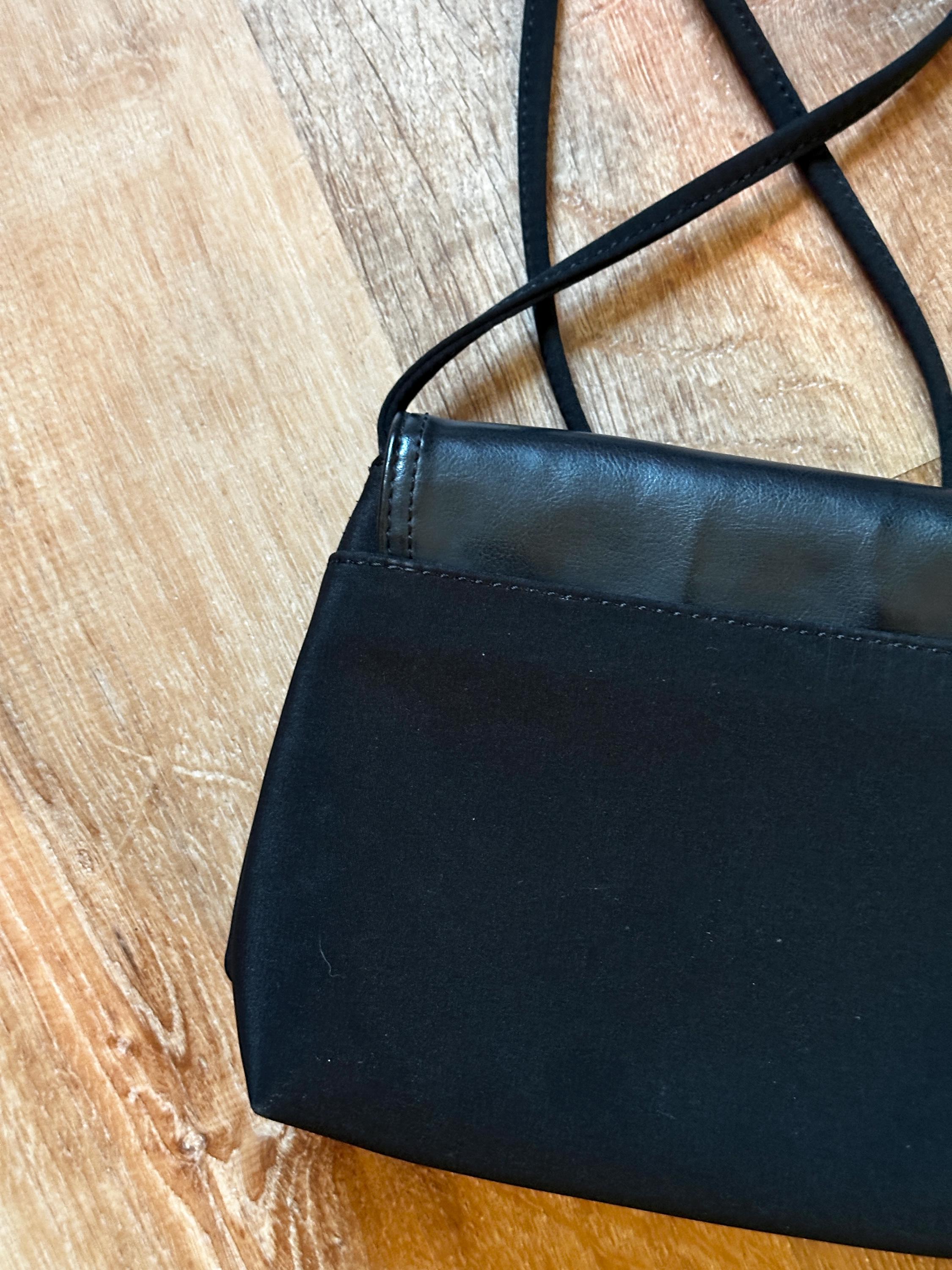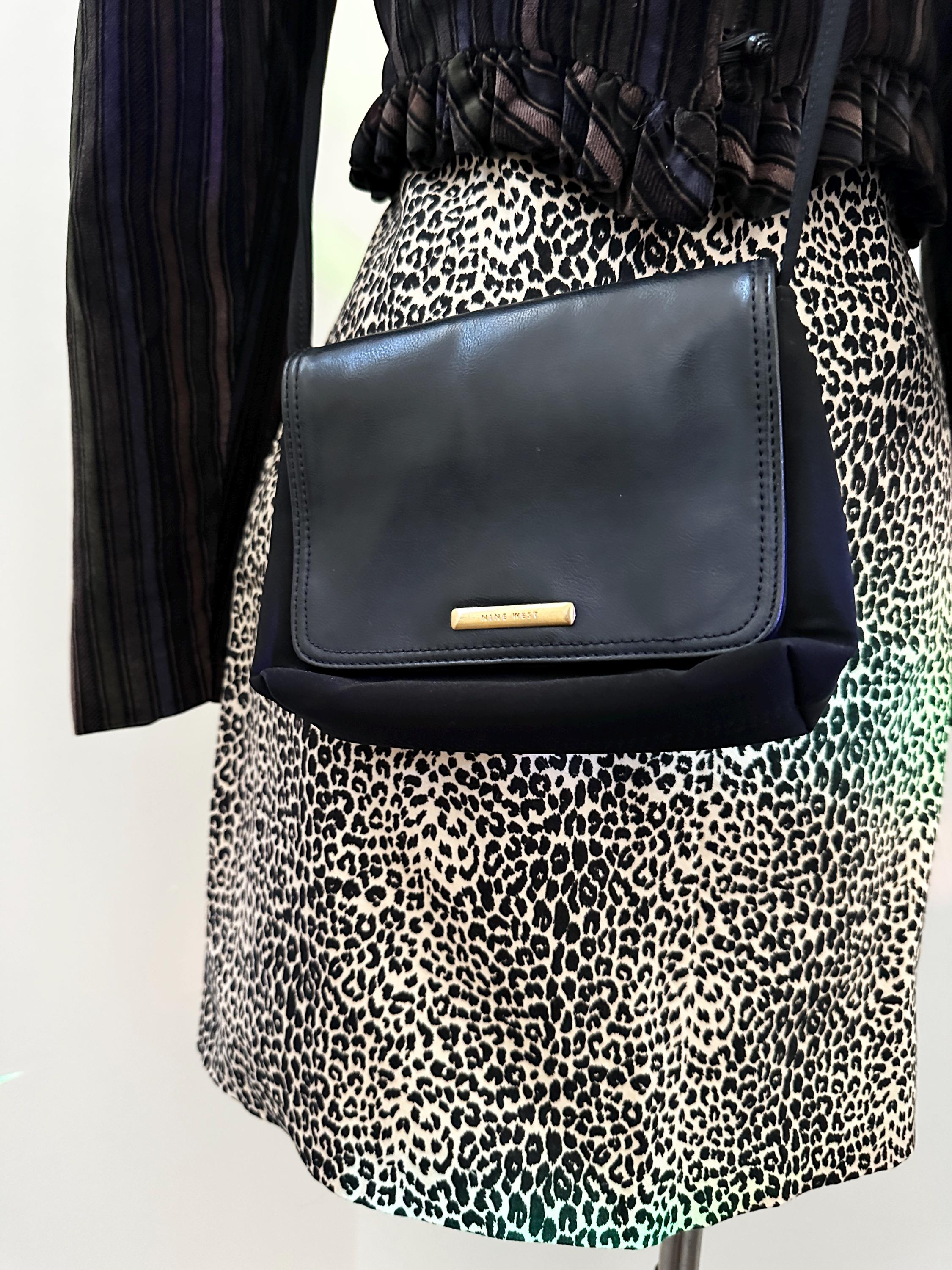 Leather flap and trim with nylon body and strap