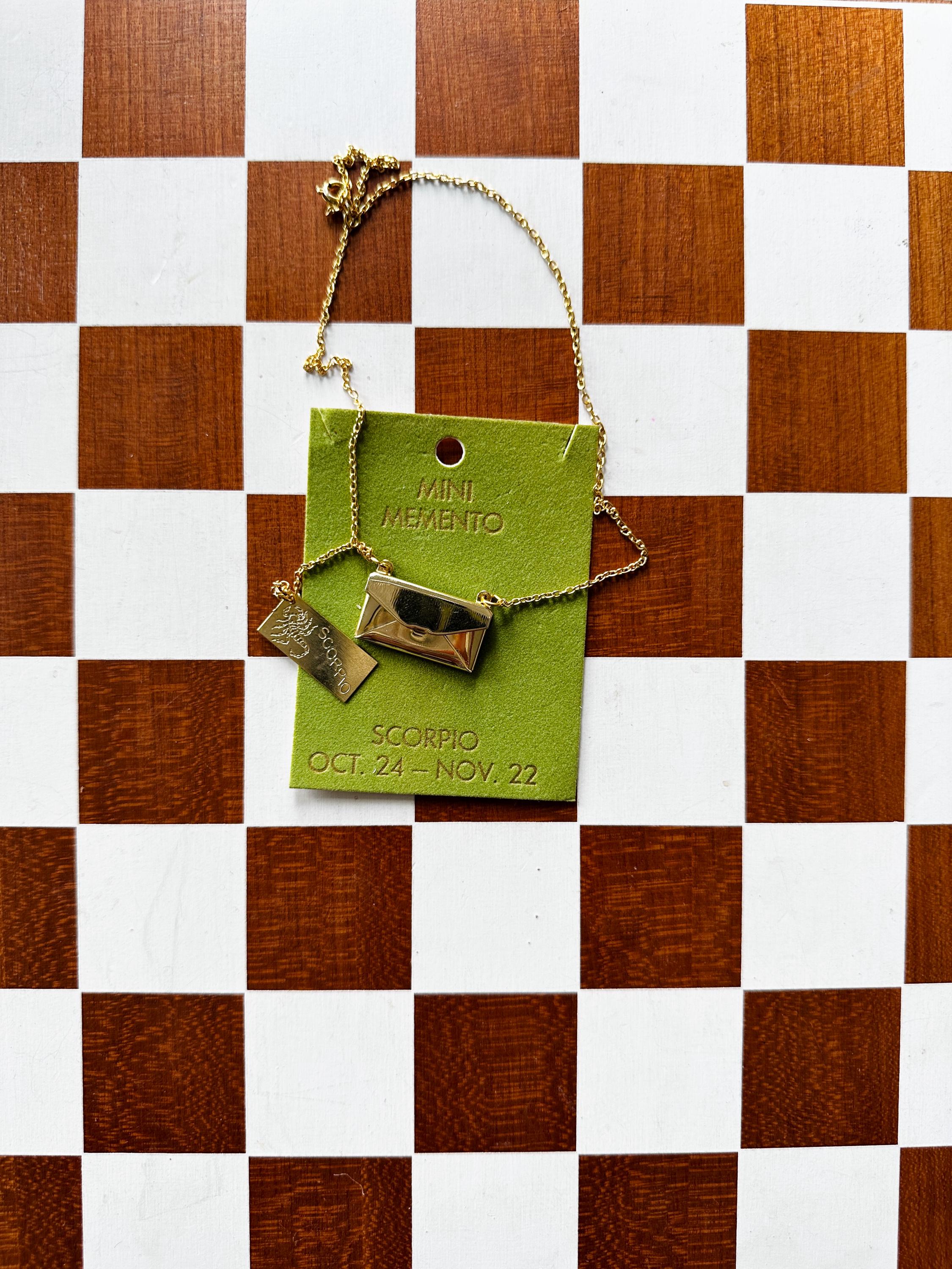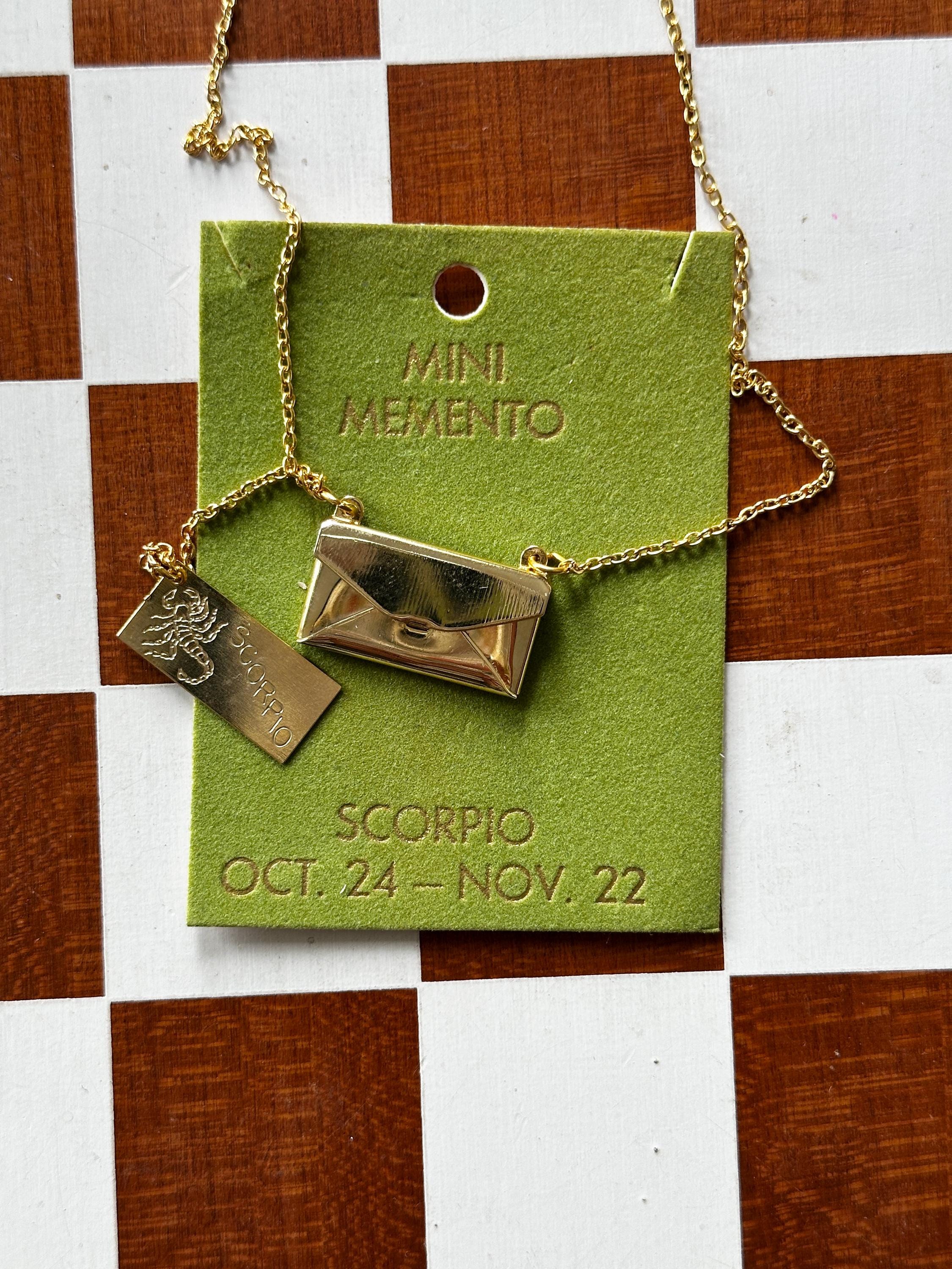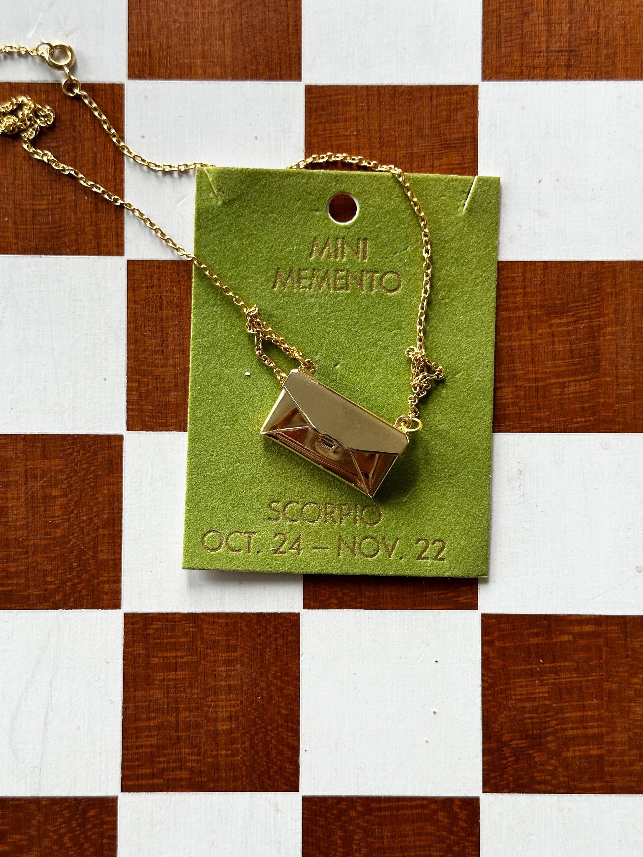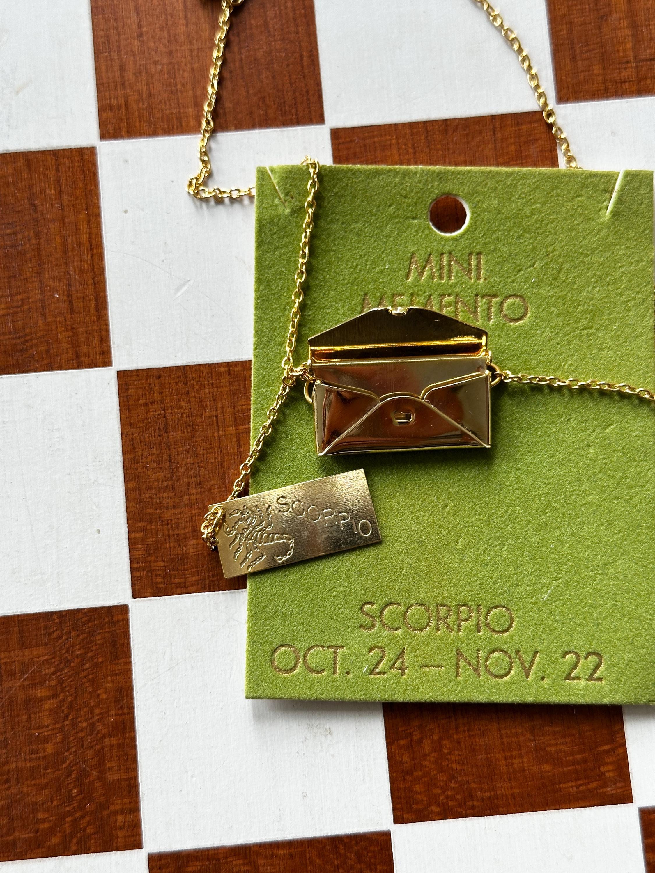 Gold-plated envelopes with zodiac "letters" inside. Functional envelope with letter attached by chain